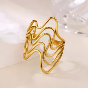 Gold Wave Open Ring for Women – Minimalist Stainless Steel Jewelry