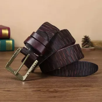 Premium Thick Cowskin Leather Belt for Men with Copper Buckle – Durable & Stylish