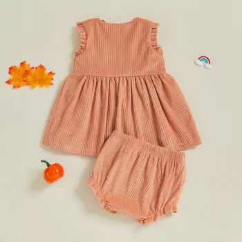 Toddler Baby Girl Pumpkin Outfit - Sleeveless Babydoll Top & Ruffle Shorts 2-Piece Set