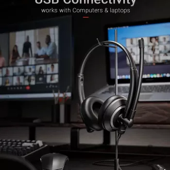 Wired USB Headset with Noise-Cancelling Mic & Lightweight Comfort